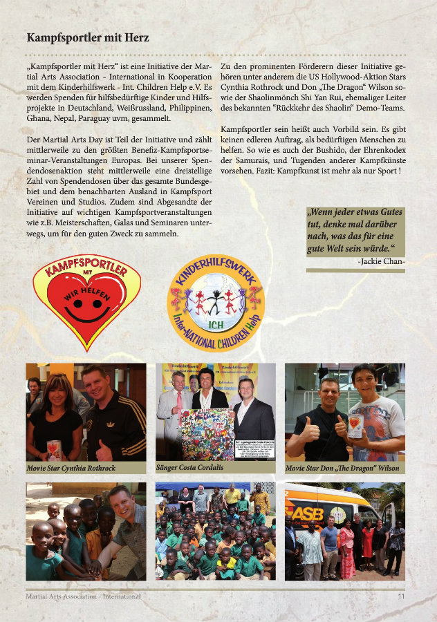 Die MAA Initiative Kampfsportler mit Herz wurde durch Bernd Höhle ( MAA Präsident ) in kooperation mit dem Präsidenten des Kinderhilfswerk Internationat Children Help e.V. Generalkonsul aD. Dr. Dieter Kindermann gegründet und arbeiten Hand in Hand.