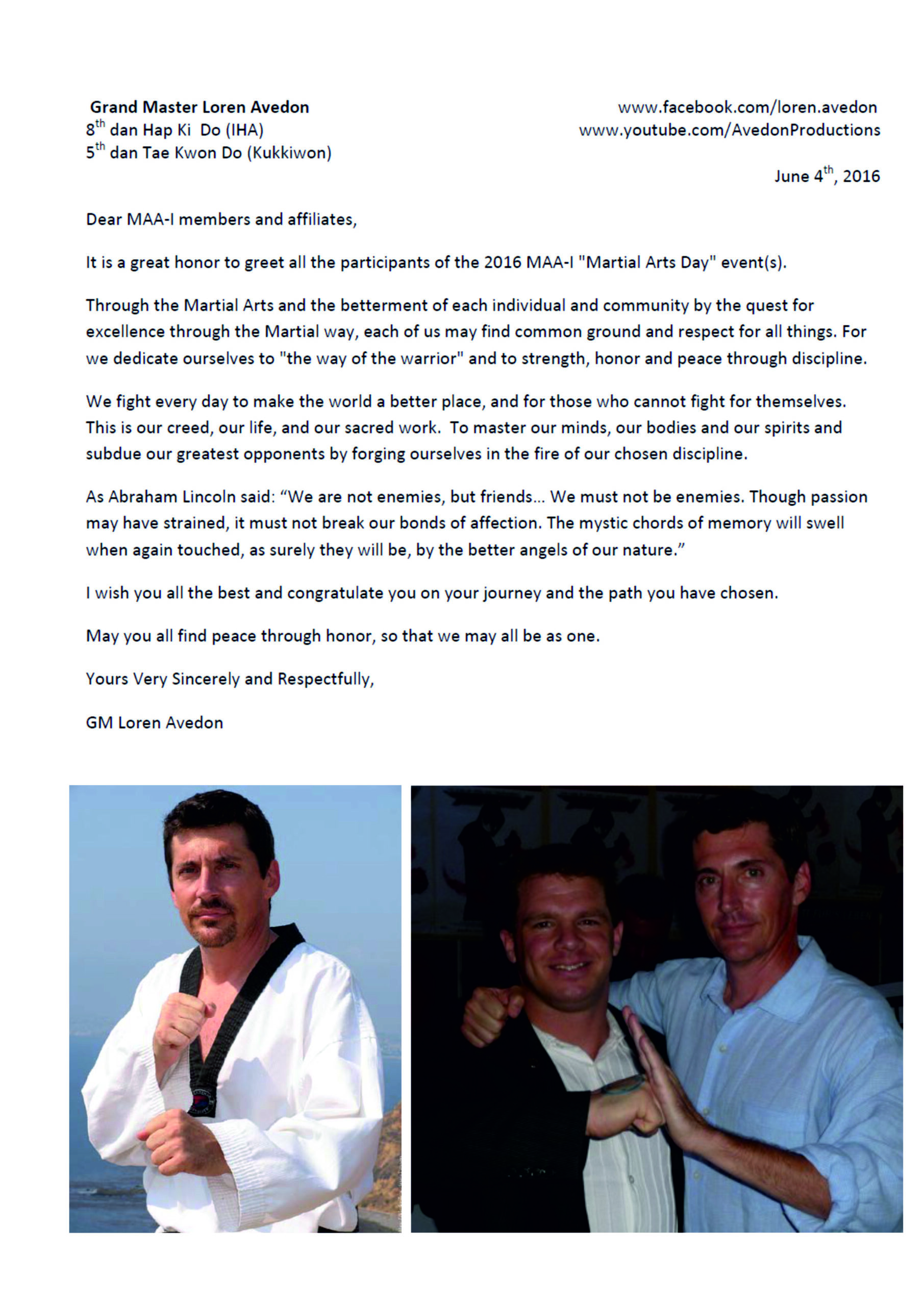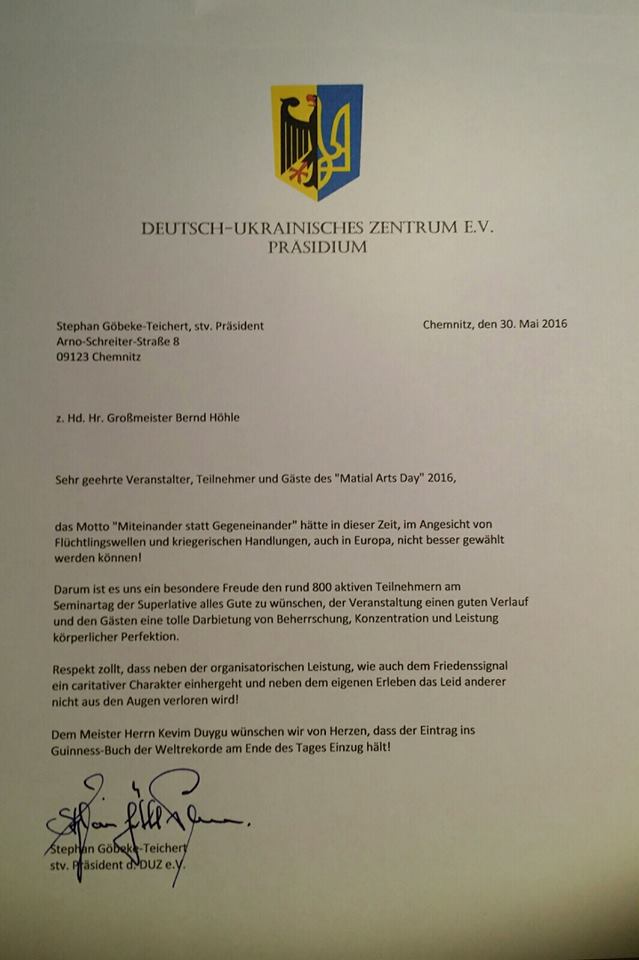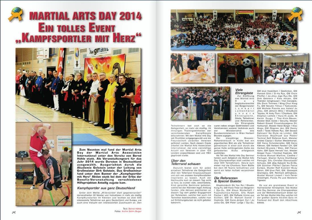 Hiermit möchte ich Grandmaster Bernd Höhle nochmals besonderen Dank aussprechen, für seine Arbeit im Bereich des Kampfsports, Organisatorischen etc..und für den super MAA – DAY 2013. Es verdient besondere Anerkennung. Master Nico Leeroy Sülzle