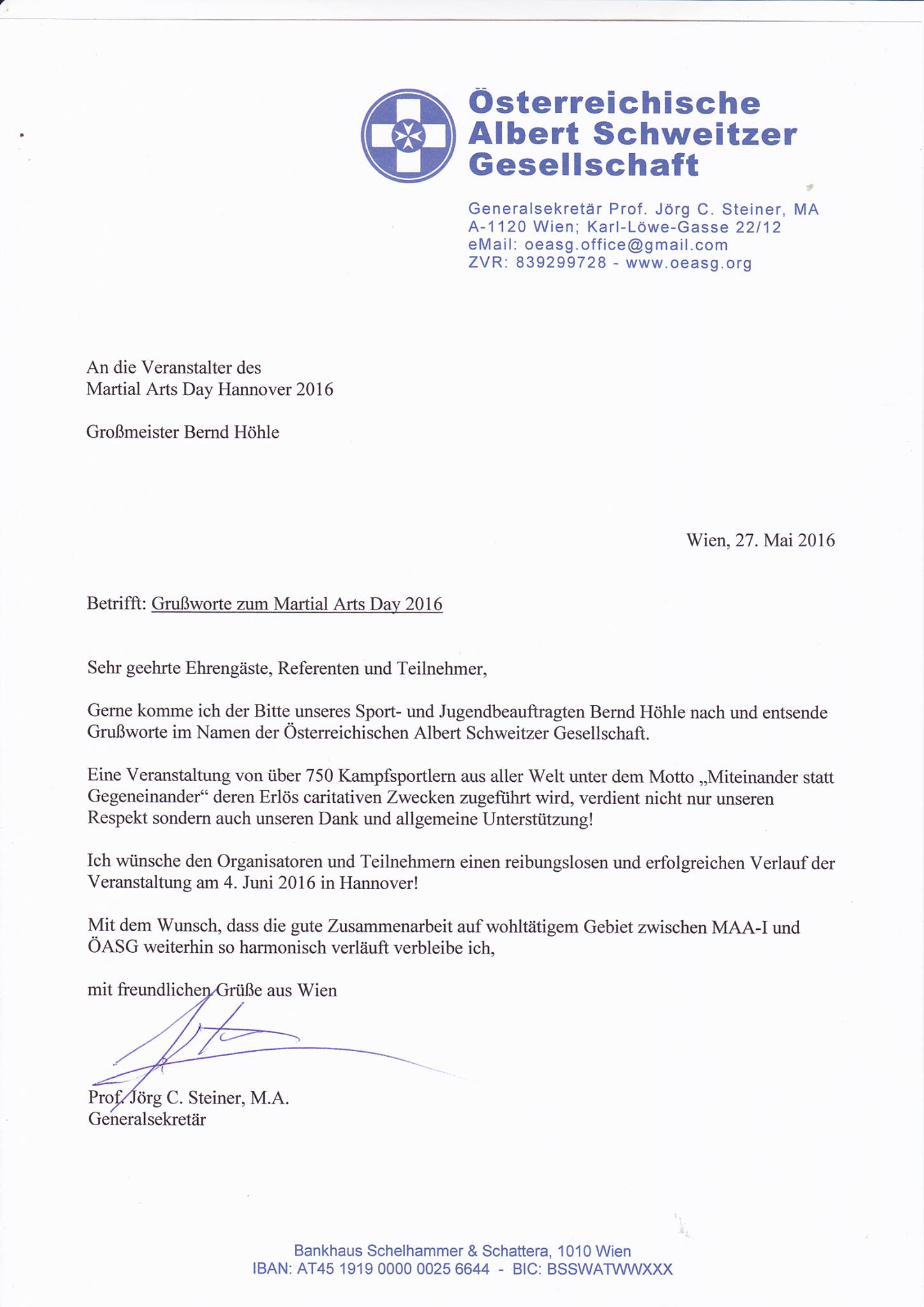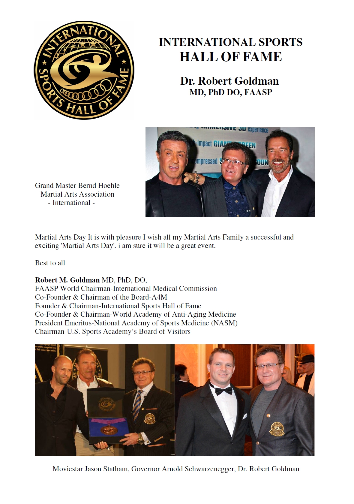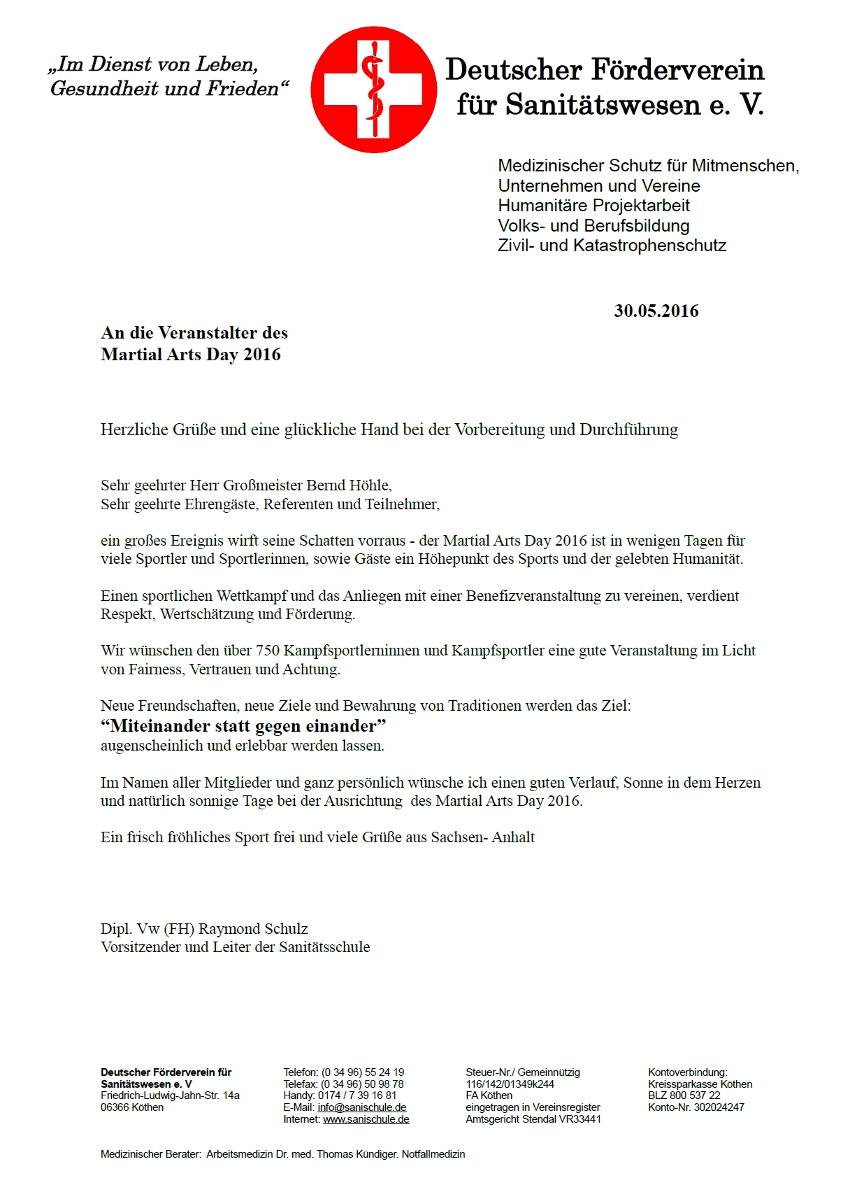 Hiermit möchte ich Grandmaster Bernd Höhle nochmals besonderen Dank aussprechen, für seine Arbeit im Bereich des Kampfsports, Organisatorischen etc..und für den super MAA – DAY 2013. Es verdient besondere Anerkennung. Master Nico Leeroy Sülzle
