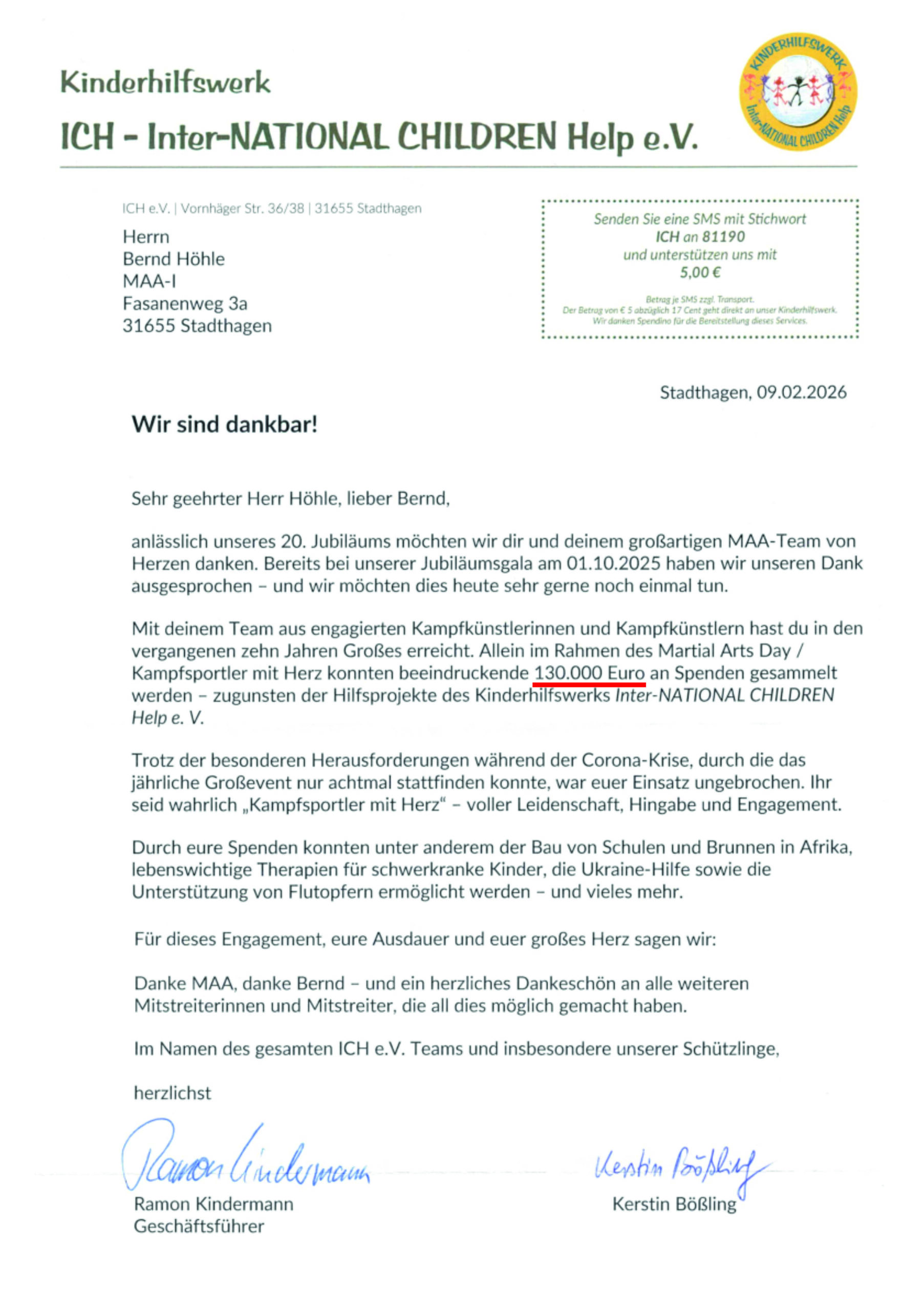 Kampfsportler mit Herz & International Children Help e.V.