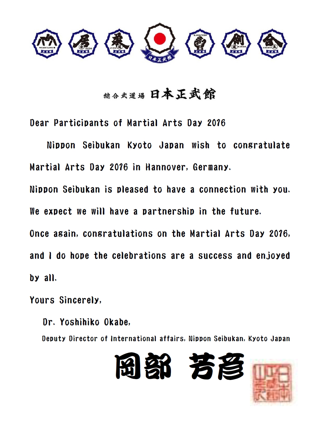 Nippon Seibukan in Kyto/ Japan, International Sports Hall of Fame, Albert Schweitzer Gesellschaft, Pak Mai Association Hong Kong,