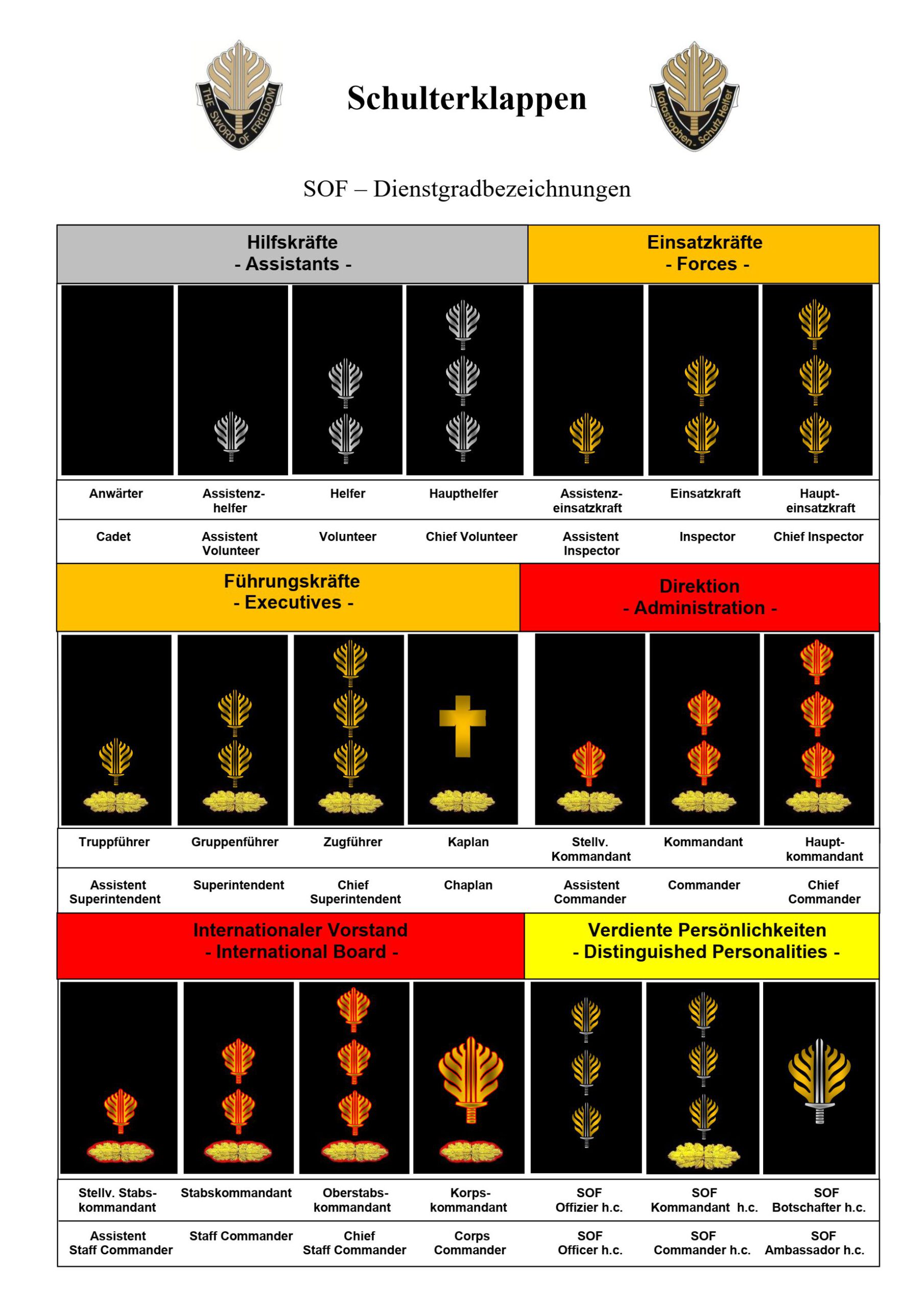 Das SOF-Corps ist in verschiedenen Teilen der Welt, aufgrund seiner Mitglieder aktiv und folgt einem bewusst dezentralisierten Organisationsmodell. Nationale und regionale Sektionen arbeiten eigenständig, orientieren sich jedoch an gemeinsamen Richtlinien, ethischen Grundsätzen und Qualitätsstandards. Dieses Modell ermöglicht: