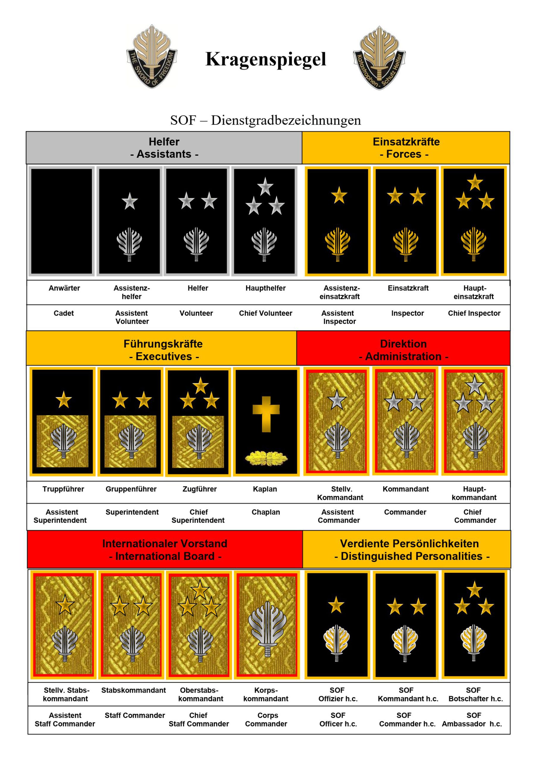 Die Mitglieder des SOF-Corps stammen aus unterschiedlichen beruflichen und gesellschaftlichen Bereichen, darunter: